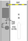 在停车场出入口处的车道隔离岛上(靠驾驶员一边)立一根读头安装杆, 杆件的直径2英寸、长度1.8米,最好使用壁厚大于1.2mm的不锈钢材料。天线立杆在隔离岛上的位置见下图。